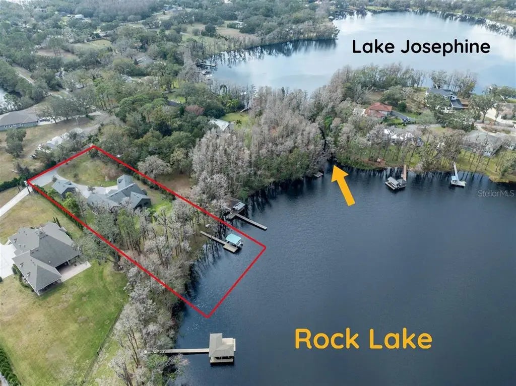 We are pleased to present this MAGNIFICENT, ONE OF A KIND HOUSE situated on a SPECTACULAR 1.76 ACRE, CUL DE SAC LOT on SKI SIZE ROCK LAKE! Built in 2017, and having OVER 150 of lake frontage and access to another nearby ski lake (LAKE JOSEPHINE), this 4 Bedroom, OFFICE, ENTERTAINMENT/GAME ROOM, 4.1 Bath, custom built home with 4,581sq. ft. of incredible living space, features: a light and bright, open floor plan with volume ceilings and neutral décor; a SPECTACULAR KITCHEN with stainless steel appliances, quartz counter tops, enormous island and walk in pantry; a GREAT ROOM sure to please, offering lake views, high ceilings with decorative beams, transom windows, plenty of room for entertaining or simply relaxing, custom built ins, and a gorgeous fireplace; a spacious, FIRST FLOOR PRIMARY SUITE with two large walk-in closets and beautiful master bath; TWO EN SUITE, FIRST FLOOR secondary bedrooms; a fourth bedroom upstairs with full bath and located adjacent to a LARGE BONUS ROOM with covered deck that offers amazing lake views; French doors and hardwood floors; HUGE SCREENED LANAI with hot tub, great for entertaining; TWO CAR ATTACHED garage and THREE CAR DETACHED garage; HOUSE GENERATOR; covered dock with lift; immaculate interior/exterior condition and much more! Add to these a CONVENIENT LOCATION for schools, shopping, dining, medical facilities, and interstate travel, and you have a fantastic place to call home!